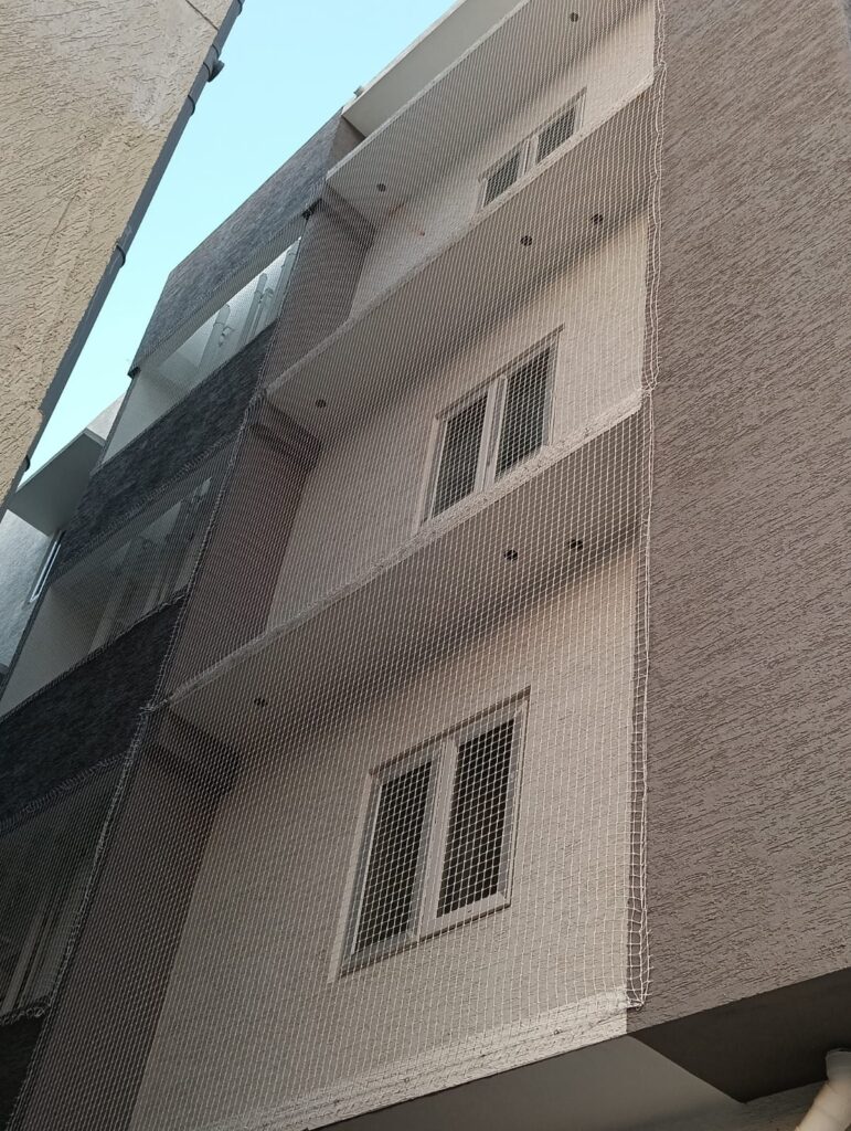 We are the skilled experts in fixing Safety nets for Balcony Safety Nets, Pigeon Safety Nets, Anti Bird Nets, Pigeon Nets for Balconies, Cricket Net Practice, Children Safety Nets, Construction Safety Nets, Duct Area Safety Nets, Building Safety Nets, Industrial Safety Nets, Swimming Pool Safety Nets Stairway Safety nets, Monkey Safety Nets, Terrace Top Nets, Glass Safety Nets, Car Parking Safety Nets, Coconut Tree Nets, All types of Safety Nets, HDPE Nets – Nylon Nets.